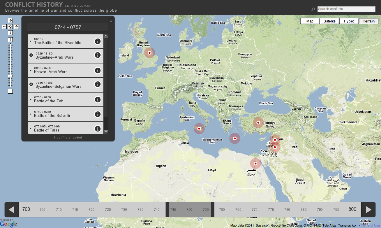 The sins of the internet are of course legion. Many if not all of those sins should be forgiven on account of Conflict History, an interactive website endeavoring to record all conflicts in human history.