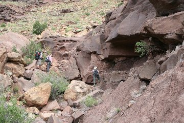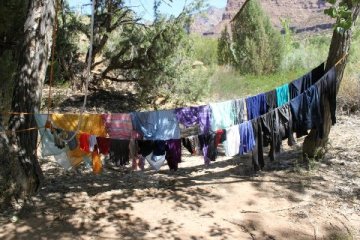 By day 14 or 15 they were out of ice and perishables were either gone or inedible. They kept water and beer (yep) cool by floating them in the river. The toilet (above) was full of flying bugs, which was a little nerve wracking, and their clothes, hair and bodies looked and smelled as if they were never going to be clean again. The Green River is not exactly the clearest water in the world for bathing or doing laundry. She’s a very accomplished outdoor person and has spent quite a bit of time in the middle of nowhere for days on end but this trip really tested her. Of course afterward a sense of accomplishment and the benefit of some great stories and useful research information erase most of the worst memories of the trip, and there were more than a few. She’s actually looking forward to the next trip.