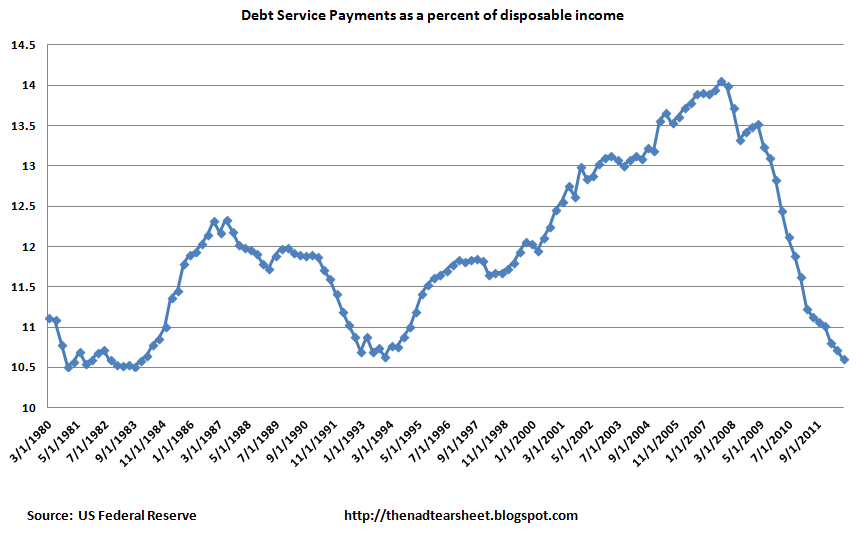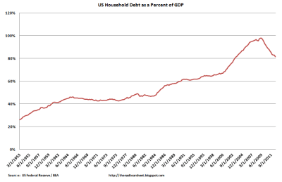 FWIW, I believe that all of these explanations have a kernel of truth, but miss the big picture – that we are recovering from an asset bubble, and the de-leveraging that follows takes a long time to work through. When people borrow en masse to fund asset purchases, the debt remains even if the asset falls in value. That debt has to be dealt with, and someone has to eat the losses. While Washington would love to figure out a way to short-circuit this process, there isn’t a good way to do it. Much of the policy debate in Washington has centered over who should shoulder the costs, but you can’t make them go away. And until they are dealt with, they will act as a drag on the economy.