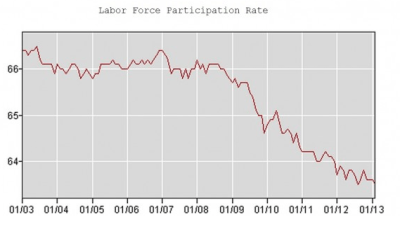 Given Friday’s positive jobs report, how long will it take us to get to full employment? Of course it depends on the labor force participation rate. The low labor force participation rate is what has been holding down the unemployment numbers, as people who have been unemployed over 6 months but are not actively looking for a job are no longer counted among the unemployed. If those people started looking for jobs again, they would start counting as unemployed and the unemployment percentage would increase. If the labor force participation rate remains stuck at the current lows, it would take 49 months. If it went back to historical norms, it would take 73 months.
