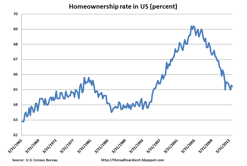 The Census Bureau reported that the homeownership rate fell to 65.2% at the end of the fourth quarter. The big excesses of the bubble years have been worked off.