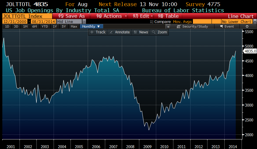 On Thursday, we will get the JOLTs job openings, numbers which are at boom-time levels. The labor market seems to be at an interesting place, with the leading indictators (initial jobless claims, job openings) signalling strength, while the lagging indicators (labor force participation rate, wage inflation) are still recessionary.