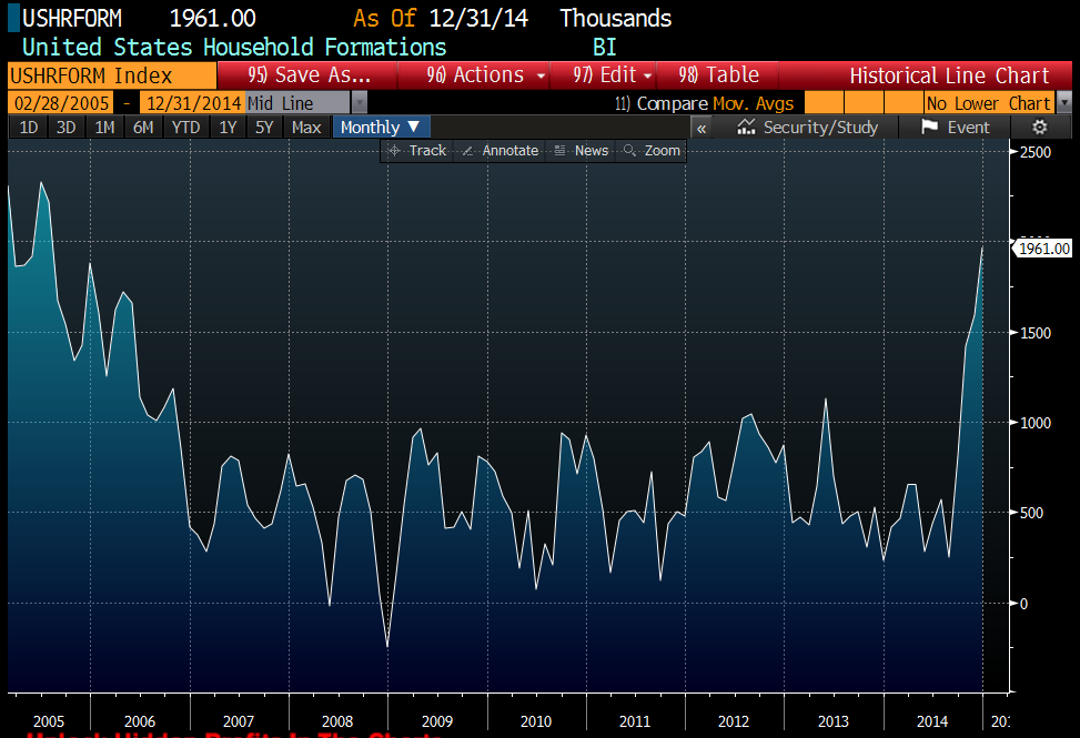 Note that optimism about 2015 construction is the highest in 20 years, according to Wells Fargo. Nonresidential construction is the driver, not resi however. Still, that means we are finally seeing some capital expenditures which is encouraging.
