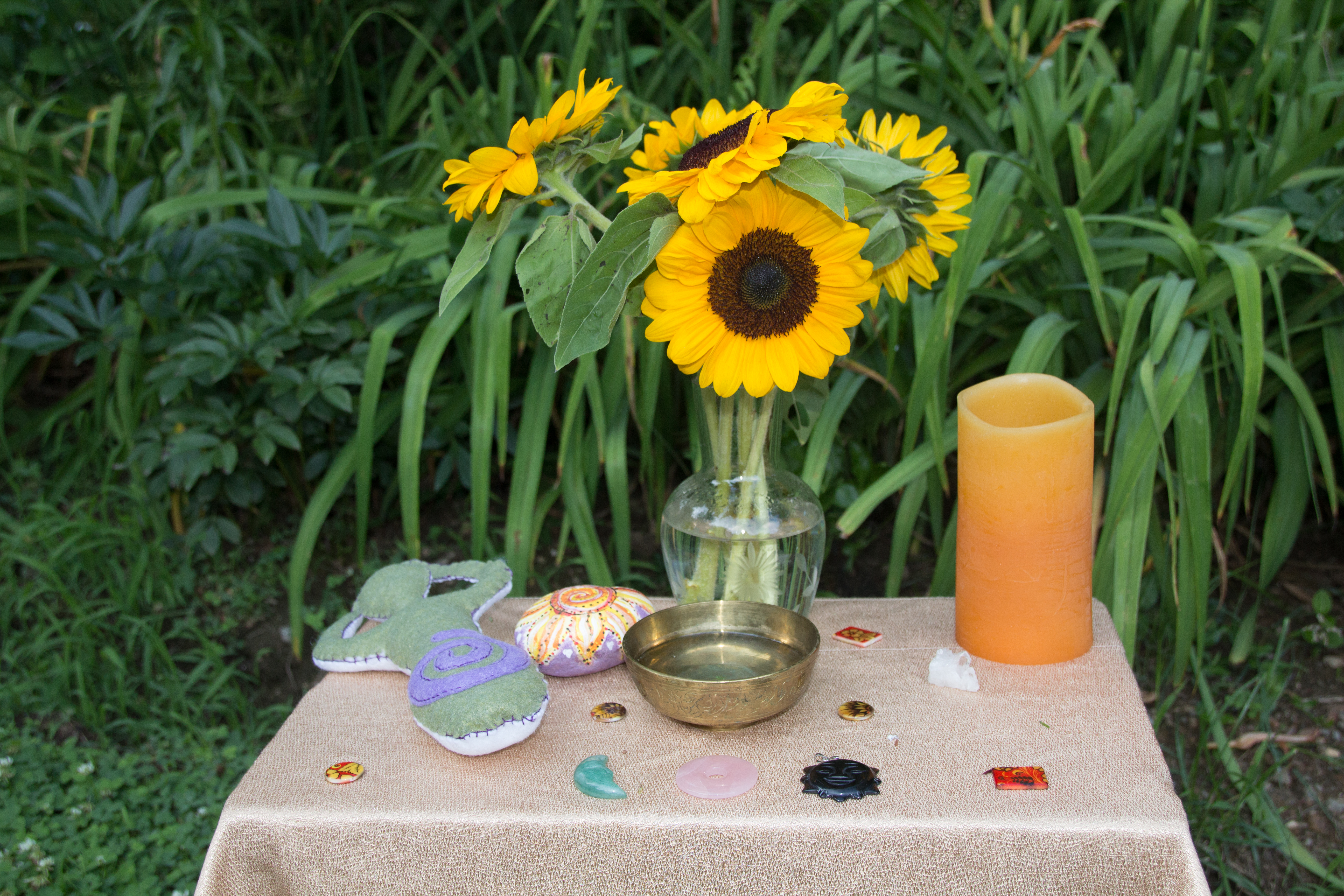 that I had never been to a Jewish wedding and had always wanted to go to one. Bride A (as I will call her) was Jewish and a woman of deep faith. She is now in rabbinical school. Bride B, my son’s friend, converted to Judaism for her despite being raised lightly pagan. It was NOT a coincidence that the wedding took place on the summer solstice. There was even a solstice altar set up just outside the ceremony area to honor that part of her heritage.