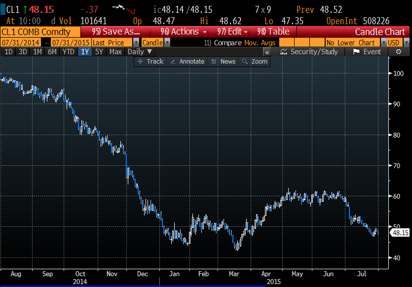 Big drop in consumer confidence, according to the Conference Board. It fell from 99.8 in June to 90.9 in July: “Consumer confidence declined sharply in July, following a gain in June. Consumers continue to assess current conditions favorably, but their short-term expectations deteriorated this month. A less optimistic outlook for the labor market, and perhaps the uncertainty and volatility in financial markets prompted by the situation in Greece and China, appears to have shaken consumers’ confidence. Overall, the Index remains at levels associated with an expanding economy and a relatively confident consumer.”