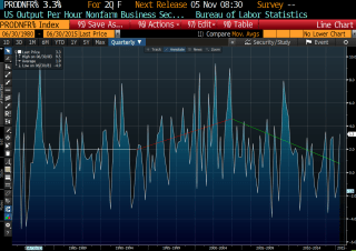 After a couple big quarters, unit labor costs fell in the second quarter by 1.4%. This number tends to be volatile, as does productivity. The Fed pays close attention to these numbers.