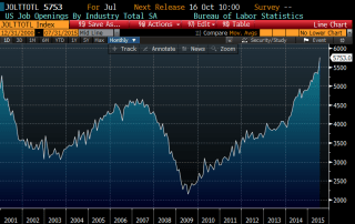 Larry Summers is out with another editorial which lays out the case for keeping rates at zero. His argument is that credit spreads have widened (which means the interest rate companies have to pay to borrow) has increased over the past month and that in of itself constitutes a tightening. David Stockman (Reagan’s budget director) was on Bloomberg Radio this morning excoriating the “clowns at the Fed” for not having raised rates already. His point is that the unemployment rate is in the middle of the range of what the Fed considers full employment. In fact, the 5.1% unemployment rate is in the bottom quintile of unemployment rates over the past 40 years.