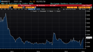 Mortgage Applications rose 9.3% last week as purchases were up 0.2% and refis were up 15.8%. The refi index has had a nice run since rates started collapsing, but we are nowhere where we used to be compared to 2013.