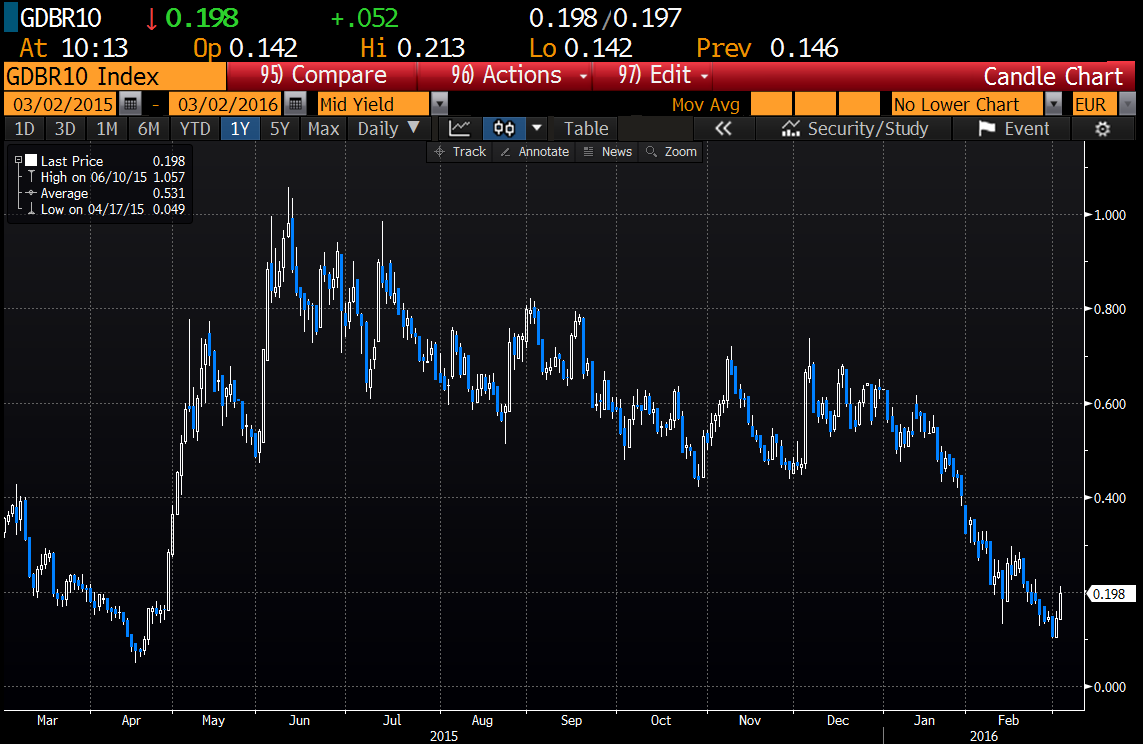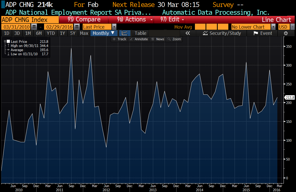 The collapse in global bond yields is sending a signal that the Fed isn’t going to ignore – that deflation remains a threat. Janet Yellen has pledged to let the labor market “run hot” for a while and that means letting wage growth run. The big question is what happens to the labor force participation rate. If these workers come back, that will prevent too much wage inflation and will be ultimately better for the economy in the longer term. If they don’t, then look for wage inflation to begin and the Fed to move earlier.