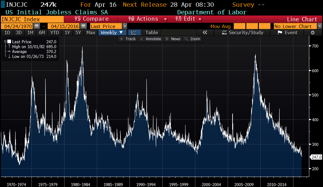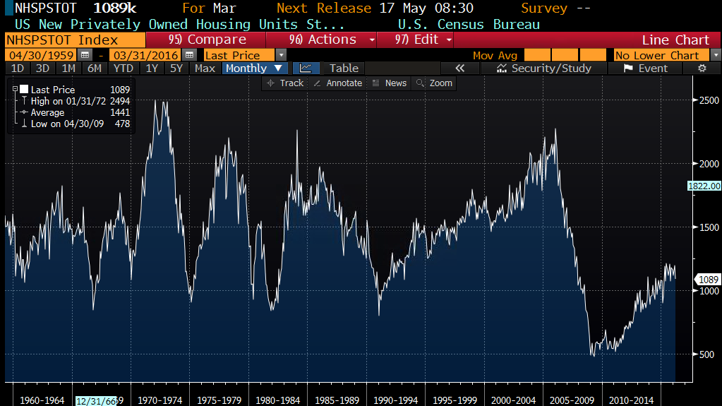 The PCE Core Index (which is the inflation measure preferred by the Fed) rose 0.1% in march and is up 1.6% YOY. This is still below the Fed’s 2% target rate. We simply aren’t going to see much in the way of inflation until we see wage growth.