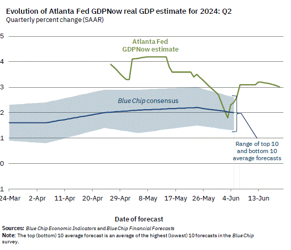 Q2 GDP is tracking around 3%, according to the Atlanta Fed GDP Now model.