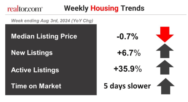 Active for-sale inventory rose 36% YOY, according to Realtor.com. The median listing price is down 0.7% YOY, while year-to-date listing prices are flat. Overall, we are getting to a more balanced home market.