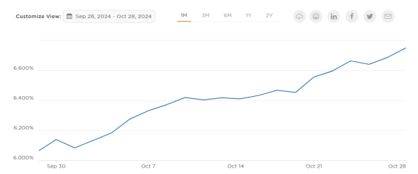 The 10 year bond yield has risen as well, but MBS spreads are widening. The ^MOVE index, which tracks bond market volatility is up some 42% over the past month, so that is probably driving it as well.